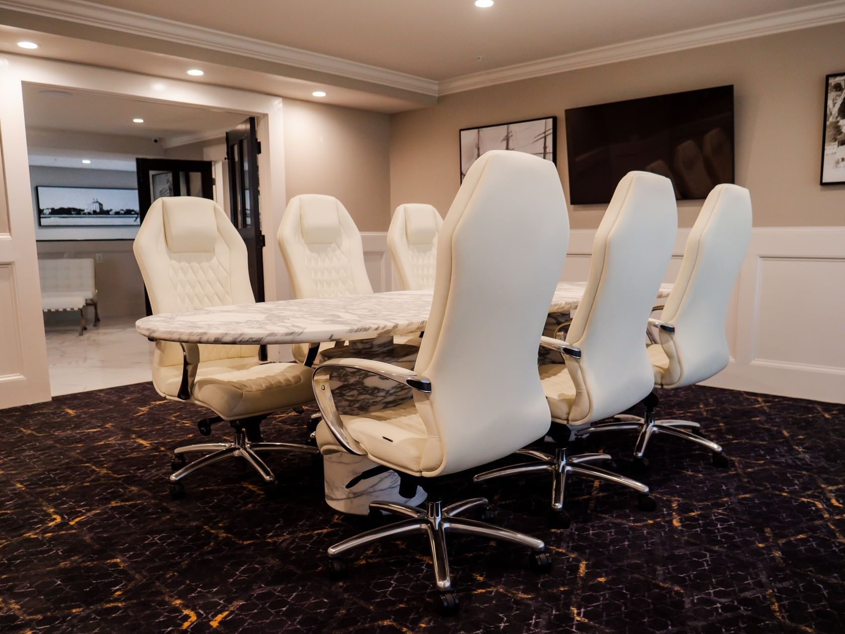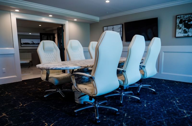 The Executive Meeting Room offers 320 square feet of refined, private space designed for focused conversation and strategic work.